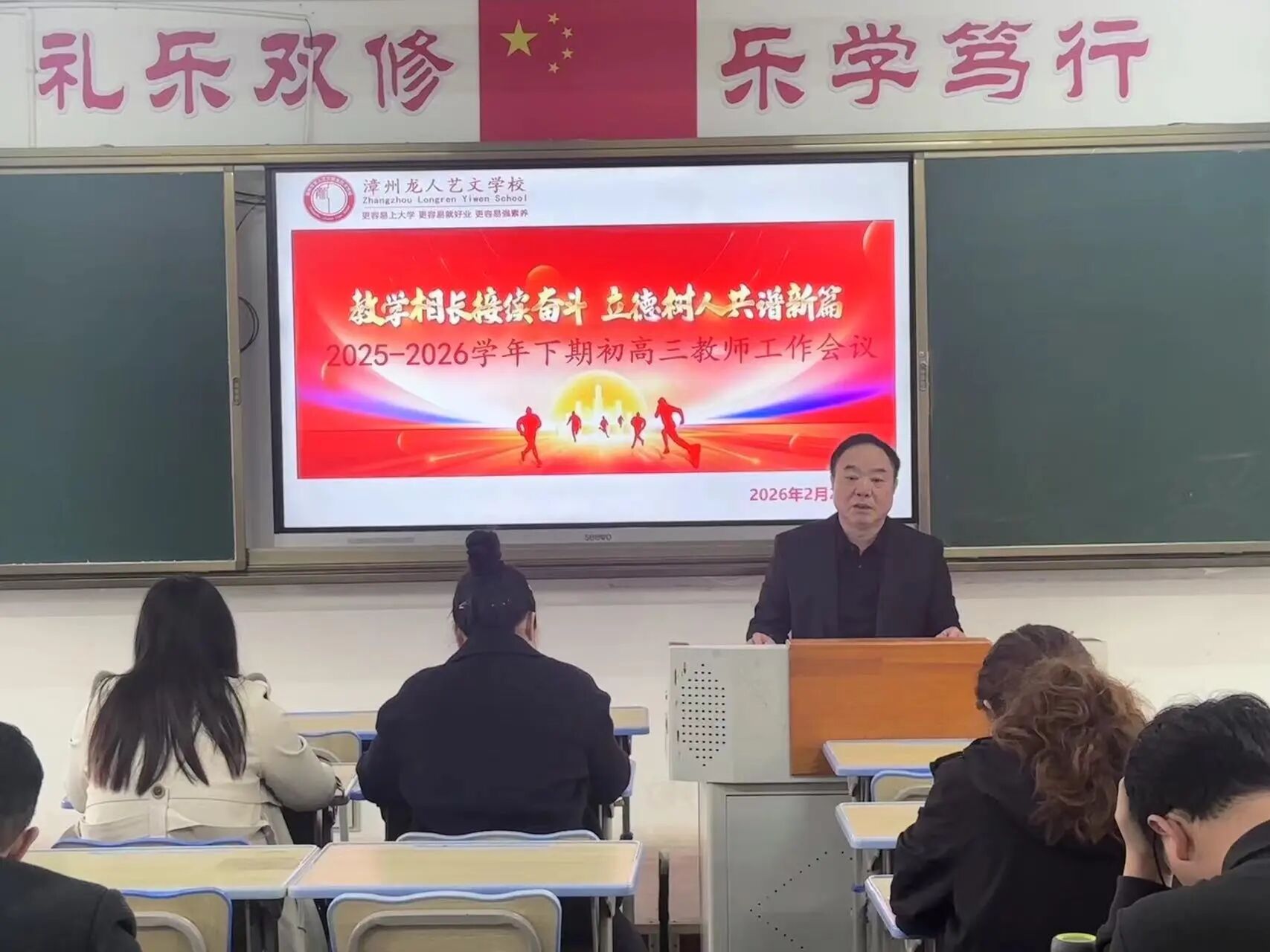 会议期间,吴群蓉副校长以马年热词 “骐骥驰骋” 送上新学期寄语,先分析高三全市二质检物理、历史方向的成绩,印证学校教学管理方向正确并要求持续坚持。她对新学期教学工作提出明确要求:要研究高考、结合学情精准选题,课堂践行 “教、学、做三合一” 理念,设置核心主问题与科学问题链,打造我校“6+1”高效课堂;针对本学期为史上最短考试季的特点,需明确考试时间、制定二轮复习计划、备好相关课程。同时,还强调教师要关注每位学生,深入沟通并落实师生结对子工作。