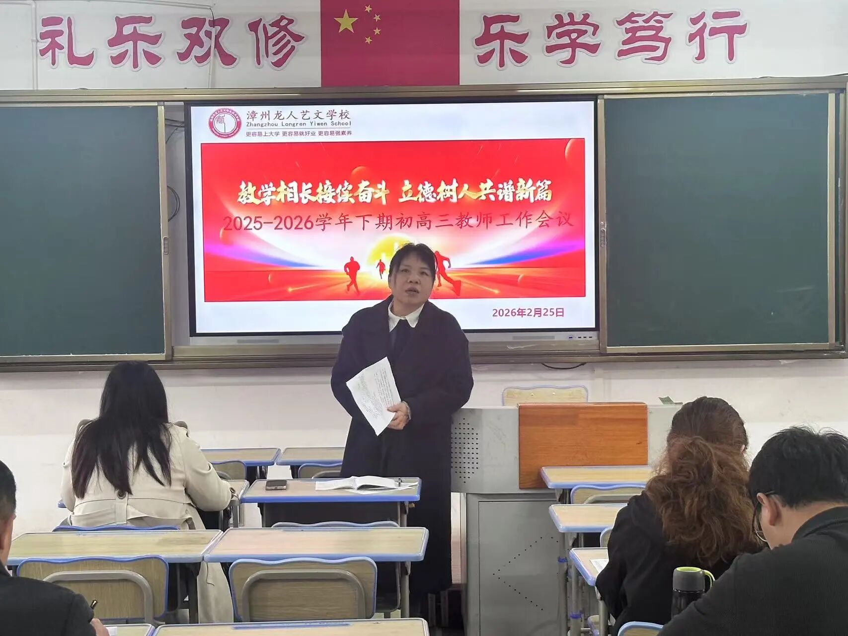 会议期间,吴群蓉副校长以马年热词 “骐骥驰骋” 送上新学期寄语,先分析高三全市二质检物理、历史方向的成绩,印证学校教学管理方向正确并要求持续坚持。她对新学期教学工作提出明确要求:要研究高考、结合学情精准选题,课堂践行 “教、学、做三合一” 理念,设置核心主问题与科学问题链,打造我校“6+1”高效课堂;针对本学期为史上最短考试季的特点,需明确考试时间、制定二轮复习计划、备好相关课程。同时,还强调教师要关注每位学生,深入沟通并落实师生结对子工作。